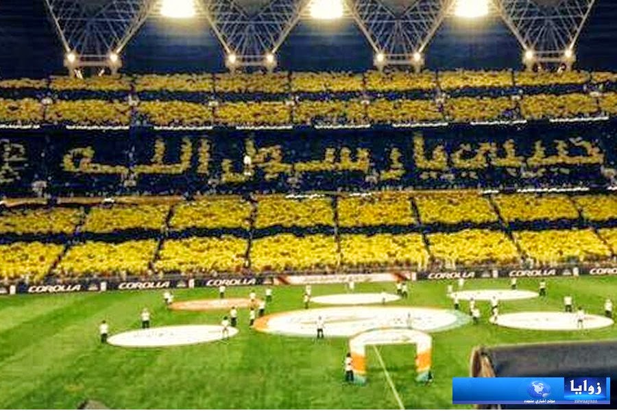 جمهور الإتحاد يزين مدرجه بـ تيفو حبيبي يا رسول الله صحيفة الرياضية