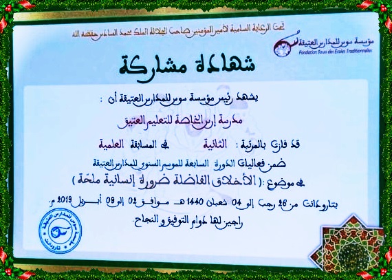 Assdasouk إداوكنظيف جمعية المدرسة العتيقة إرس توجه رسالة شكر وتقدير الي جميع الجهات المساهمة في إنجاح ملتقي تارودانت للمدارس العتيقة